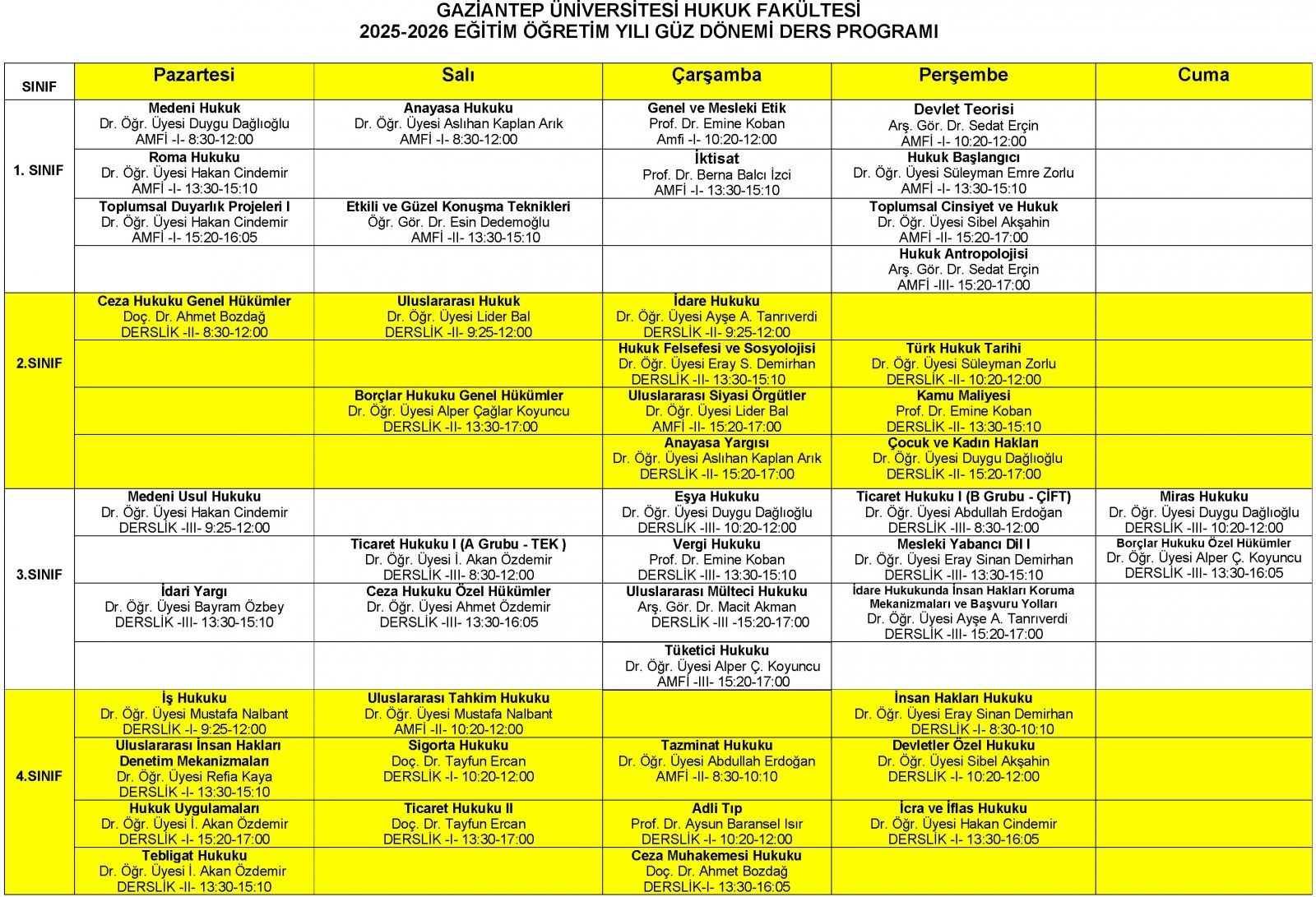 2025-2026 EĞİTİM ÖĞRETİM YILI GÜZ DÖNEMİ DERS PROGRAMI